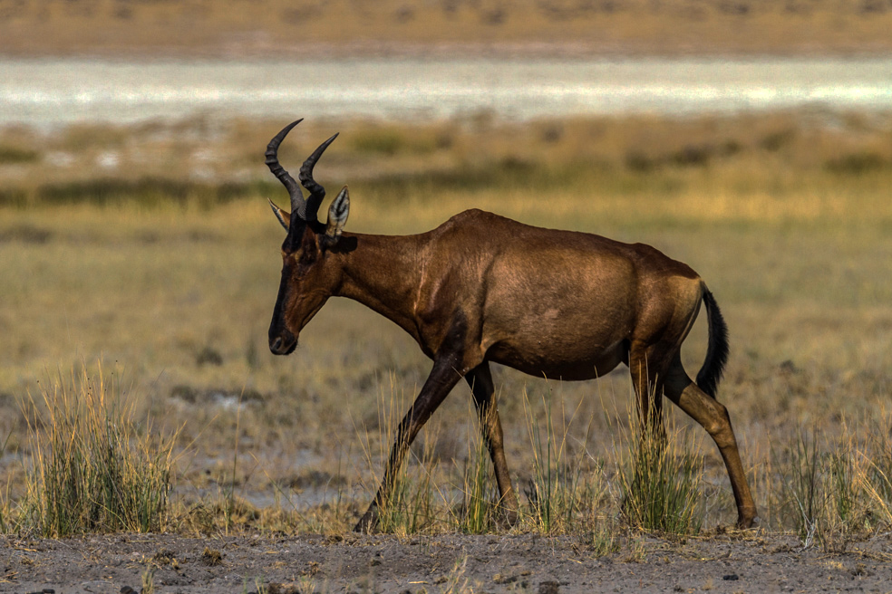 2015 sehen wir Hartebeests im Etosha Nationalpark auf der Fahrt vom Halali Camp zum Namutoni Camp und am Wasserloch in der Emanya@Etosha Lodge.